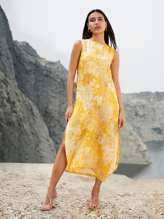 Yellow Coral Midi Dress